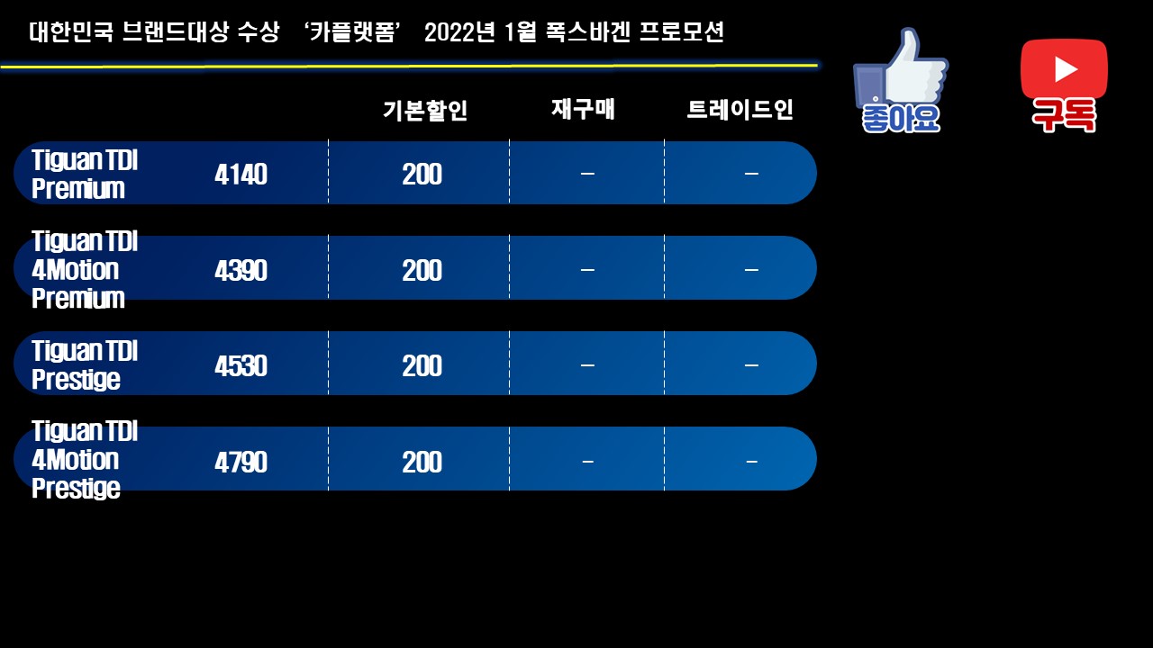 2022년 1월 폭스바겐프로모션, 전차종 할인 통합본! 재고 구매꿀팁! 골프, 제타, 티구안, 티록, 파사트, 아테온, 투아렉 할인 프로모션