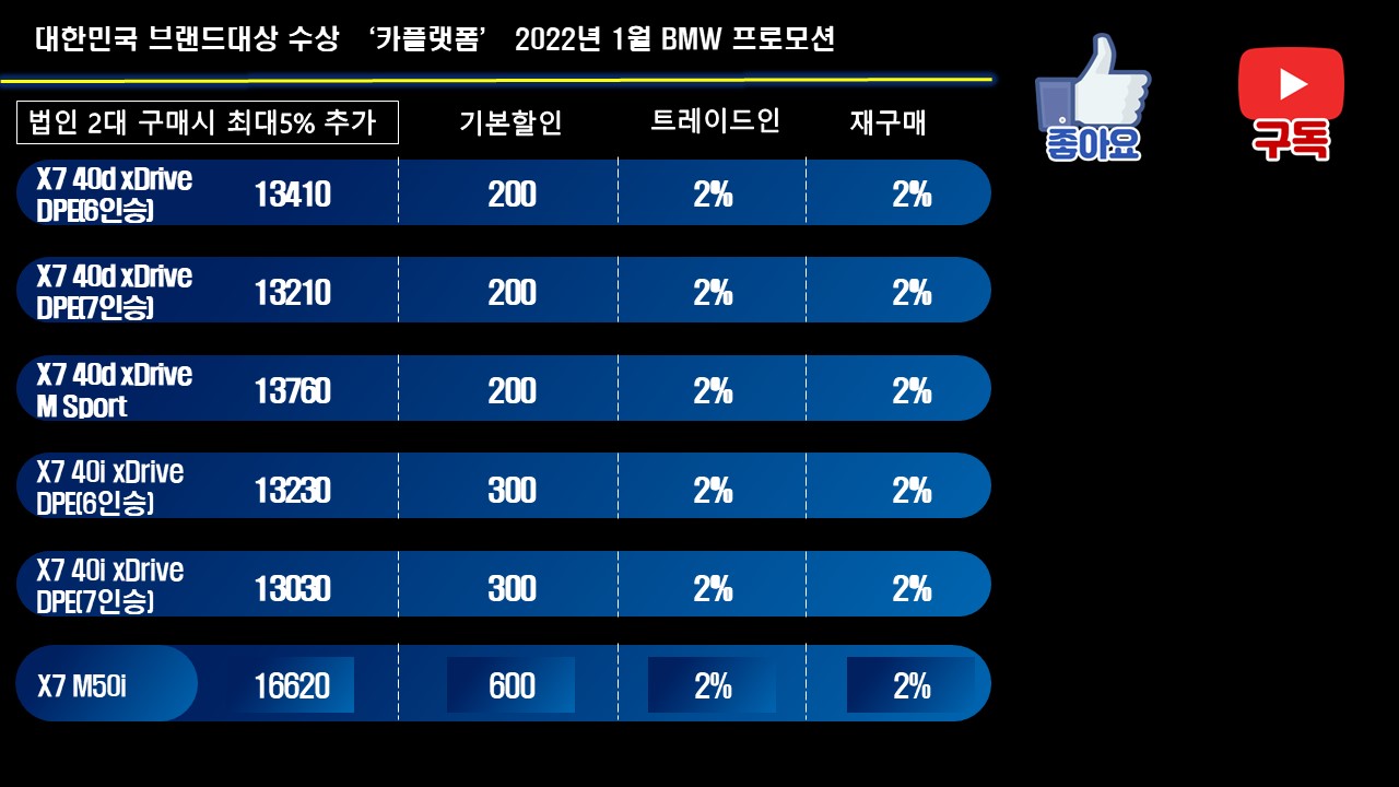 2022년 1월 BMW프로모션, 전차종 할인 통합본! 재고 구매꿀팁! 1시리즈, 2시리즈, 3시리즈, 5시리즈, 7시리즈, X1, X2, X3, X4, X5, X6, X7, IX